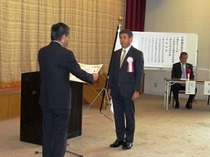 九州運輸局長表彰 企業役員 受賞 投稿日時: 2015年7月29日 投稿者: nishi-f 第20回海の日記念日(平成27年7月20日)の表彰式は、およそ150年前、久坂玄瑞他による外国艦船砲撃事件の砲台跡地である亀山八幡宮で行われました。(関門海峡を望む)(下関海事事務所羽仁所長様により表彰される、緊張した堀井社長です。)